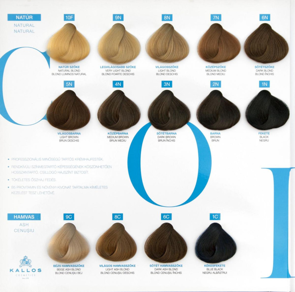KALLOS COLORS KRÉM HAJFESTÉK Természetes, tartós színhatást biztosít. Tökéletesen fedi az ősz hajszálakat. B-5 provitamin és növényi kivonat tartalma kíméletes kezelést tesz lehetővé. Gazdag színválasztékban, számos színárnyalattal.