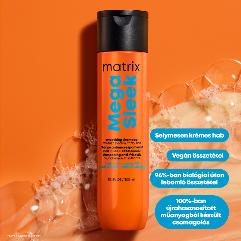 Használata: Vidd fel nedves hajra. Habosítsd fel. Öblítsd le. Majd használd a Mega Sleek kondicionálót. Ha szembe kerül, bő vízzel azonnal öblítsd ki.