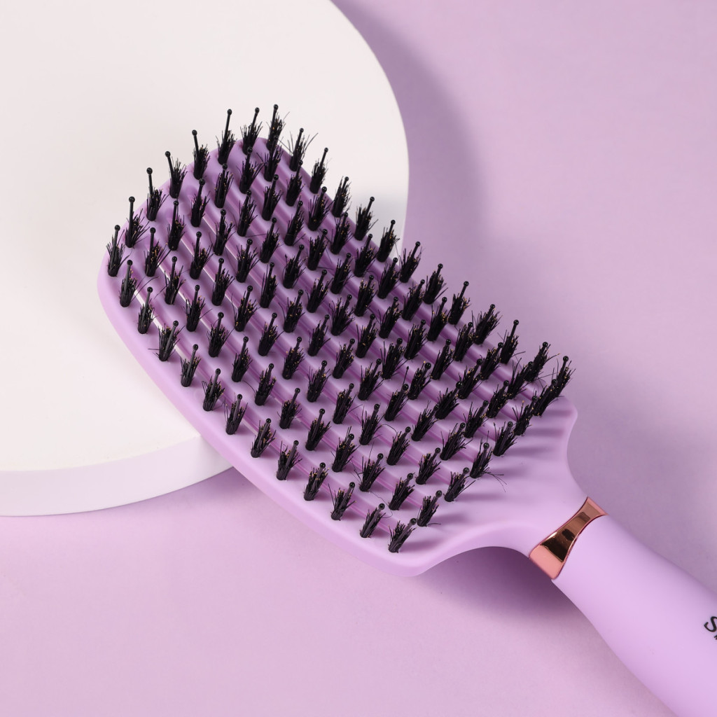 Természetes vaddisznó sörték + antisztatikus nylon tüskék masszázs hegyekkel – gyengéden kibontja, simítja és masszírozza a fejbőrt.